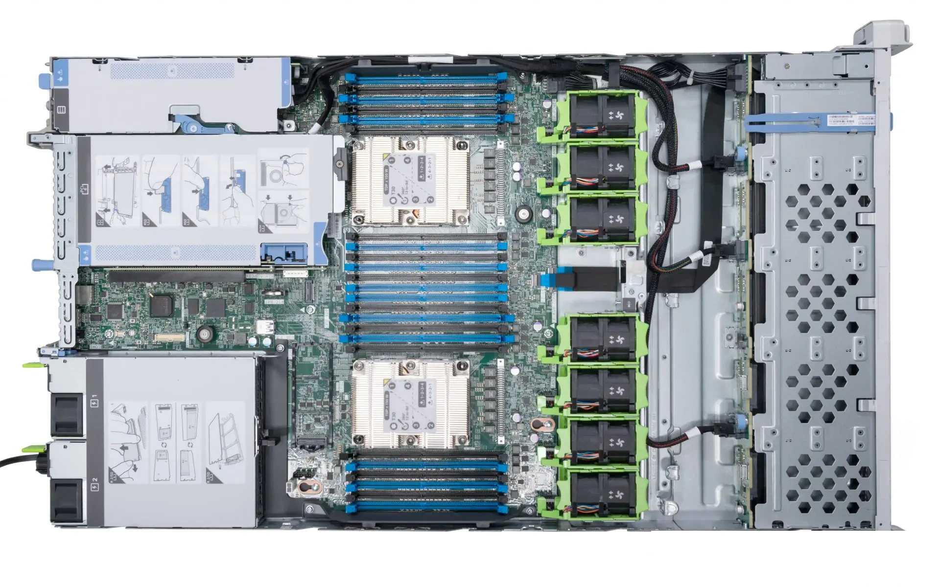 Внутренние интерфейсы: 2x FCLGA3647 Intel CPU Sockel für Skalierbare Intel® Xeon® процессоры – bis 28 Core CPUIntel® C621 Series Chipset24x DDR4 288pin ECC DIMM banks up to 3TB RAM2x Riser interface1x PCIe 3.0 x16 low profile1x PCIe 3.0 x8 Full profile1x FlexibleLOM slot1x USB 3.0 connector1x MicroSD card slot2x S-ATA