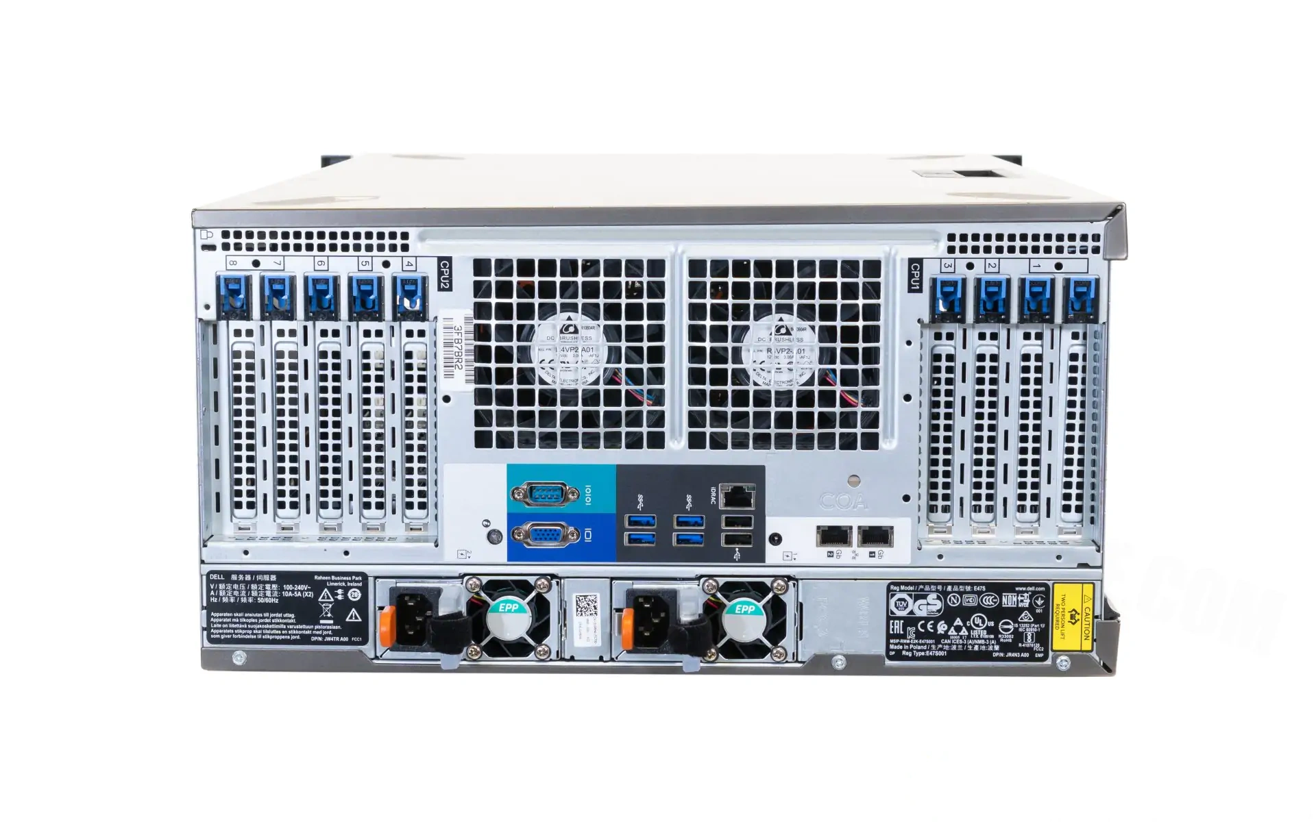 Внешние интерфейсы: 5x USB 2.0 (1x front)3x USB 3.0 (1x front)2x RJ-45 LAN Gigabit 10/100/1000 MbitDELL iDRAC9 Basic with Lifecycle Controller (Optional IDRAC Enterprise with remote KVM)1x VGA 15pol. D-SUB1x Seriell RS232 interface2x IEC power connection
