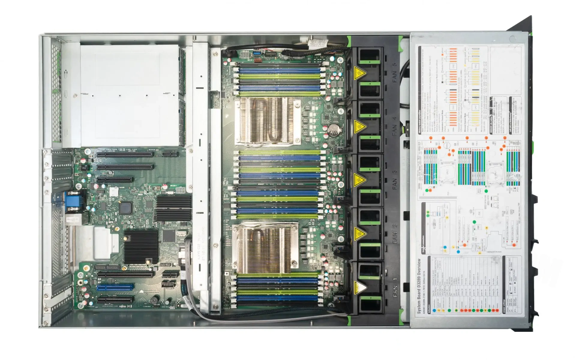 без дисков — салазки не включены в поставку Оптический привод: нет Сеть: 2x Gigabit-LAN RJ-45 10/100/1000 Mbit(встроенная) Внутренние интерфейсы: 2x FCLGA2011-3 Intel CPU Sockel for XEON E5-2600 v product family Intel® C612 chipset24x DDR4 240pin ECC DIMM banks (12 DIMMs per CPU, 4 channels with 3 slots per channel) Up to 1536 GBвстроенная 8x S-ATA 6Gbit/s RAID Controller (RAID 0,1) for up to 8x S-ATA drives available3x PCIe x8 Low Profile 3x PCIe x16 Low Profile1 x SATA channel for ODD1x USB Внешние интерфейсы: 5 x USB 2.0 (2x rear, 1x front external, 1x USB stick, 1x uSSD)5 x USB 3.0 (2x front, 2x rear, 1x internal for backup device)2x RJ-45 LAN Gigabit 10/100/1000 Mbit1x dedicated management LAN port for iRMC S4 (10/100/1000 Mbit/s)1x VGA 15pol. D-SUB1x Seriell RS232 interface Management: IRMC4 Advanced KVM , optional: remote Video Redirection active Габариты 482.4 mm (Bezel) / 445 mm (Body) x 770 x 86.6 mm Видеокарта: встроенная Блоки питания: 2x Fujitsu HotSwap (горячая замена) Power supply Совместимые ОС: Windows: Windows Server 2008/R2, 2012/R2, 2016, 2019; Windows 7, 8, 10