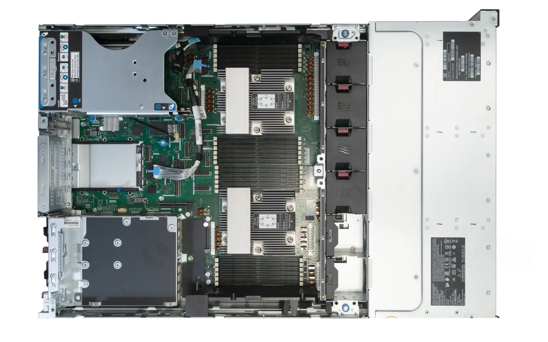 Внутренние интерфейсы: 2x AMD EPYC SP5 CPU Socket 4th / 5th Generation EPYC CPU24x DDR5 ECC DIMM banks up to 6TB RAM – 12 channels per CPU2x OCP 3.0 module Slot2x USB 3.2 Gen1 connectorembedded TPM 2.0up to 3x Riser interface:Primary Riser CPU 1default Primary Riser 1 CPU 1:3. PCIe 5.0 x16 – x16 Connector- Full-height, Half-length slotoptional Primary Riser 2 CPU 1:1. PCIe 5.0 x16 – x16 Connector – Full-height, Half-length slot2. PCIe 5.0 x16 – x16 Connector – Full-height, Half-length slot3. PCIe 5.0 x16 – x16 Connec