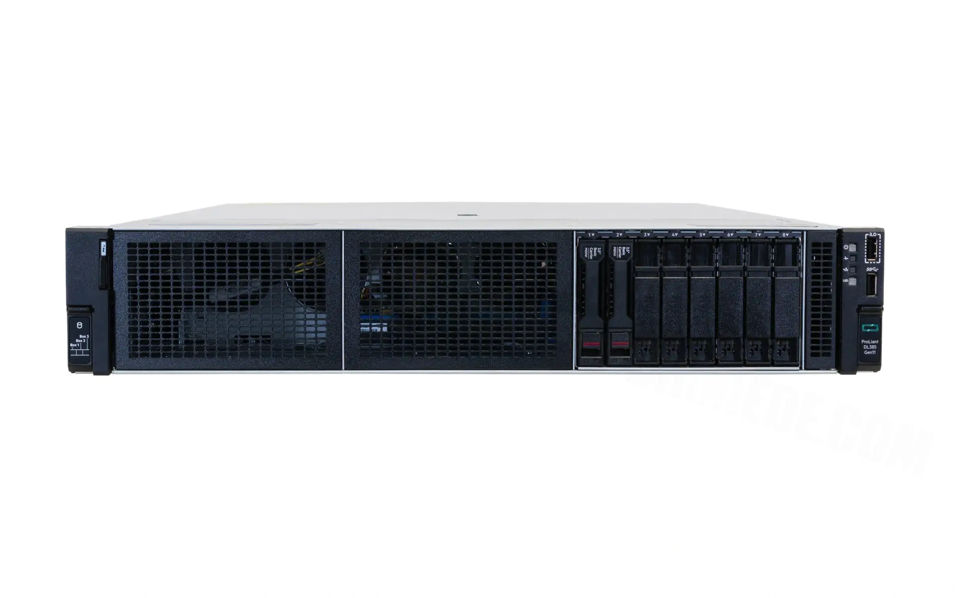 Сервер HP ProLiant DL385 Gen11 2U с 8 отсеками для 2,5-дюймовых SFF-накопителей Tri-Mode SAS NVMe, 2 процессорами AMD EPYC Gen4/Gen5, памятью DDR5 ECC, массивом RAID и 2 блоками питания